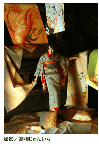 なにかやって出会いがあって、またなにかやって出会いがあっていう繋がりで、今まで来ています。いま、一緒に仕事をさせていただいている荻田さんていう方も、渋谷パルコの中の「ふりふ」っていうお着物とかを扱っているお店で、店頭のパフォーマンスで描いてるときに来てくれたお客さまだったんですよ。