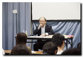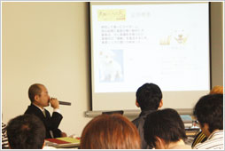 AMGエンタテインメントからは、「動物シリーズ」を人気シリーズに導いた永森プロデューサー自らお出でくださり、プロットを選考する側の立場から企画概要を説明してくださいました。昨年の『犬飼さんちの犬』企画原案コンペを例に「読み手の心をつかむプロットはどう書けばいいのか」「映像企画の中での文章の仕事」などプロの現場からの率直な意見に、学生たちは真剣に聞き入っていました。