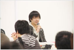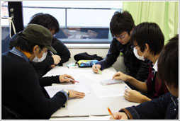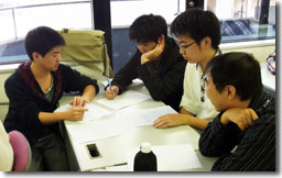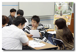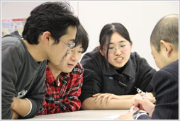 メンバーと話し合う学生たち