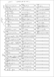 「箱書き」とは、映像化する際のシーン数に応じたスペースを紙面上に用意し、各スペースに物語の骨子を振り分けて書き込んでいく作業です。 今回は、約50分間の映像作品を想定しているため、1分につき1個の箱書きが50個必要となります。