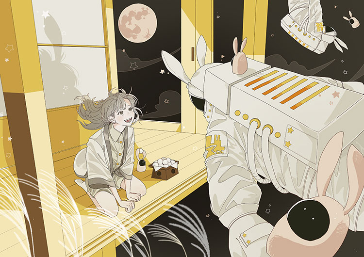 宇宙服を着たうさぎとお月見をしているという、面白いアイデアが詰まったファンタジー色の強い一枚。独創的で、数あるイラストの中でも目立っていました。