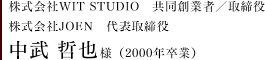 本学院卒業後、株式会社プロダクションIGに入社。同社のグループ企業である株式会社 WIT STUDIOを設立し、共同創業者/取締役に就任。代表作としてTVアニメ「進撃の巨人」シリーズや大ヒットを記録した「SPY×FAMILY」、そして昨年の発表から話題を集めている「ONE PIECE」の再アニメ化となる「THE ONE PIECE」など、多くの人気作を手掛けている。