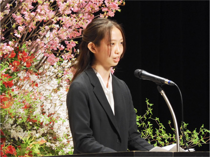 新入生を代表して、声優学科の吉田野乃さんから挨拶がありました。
