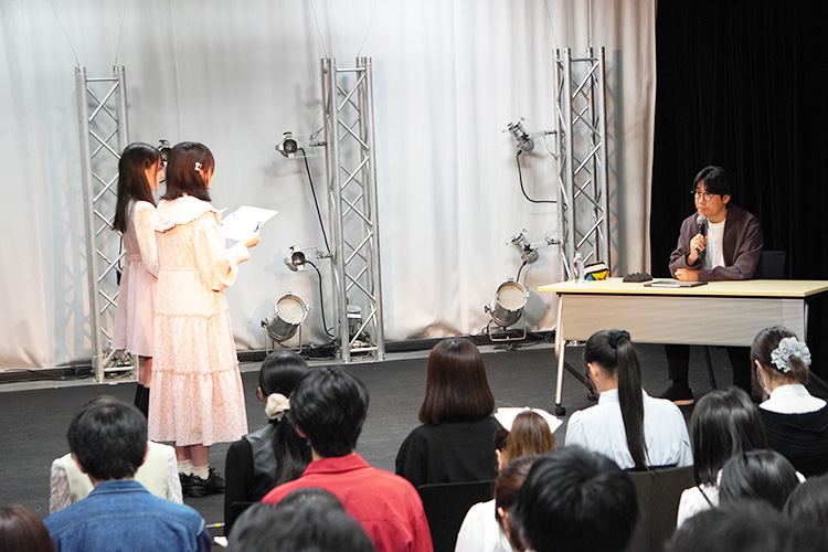 声優学科 本科2年生の講義で、模擬オーディションを実施。「なにか得てもらえると、僕も嬉しいです。あなたたち一人ひとりに個性があるということを忘れないでください」と、講義冒頭で話してくださいました。