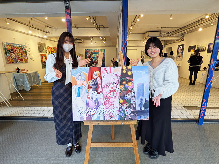 原宿のデザインフェスタギャラリーEAST全館を貸し切り、3日間にわたって開催された<えび展>。キャラクターデザイン学科2年生にとって集大成となる作品が、今年もギャラリーを鮮やかに彩りました。