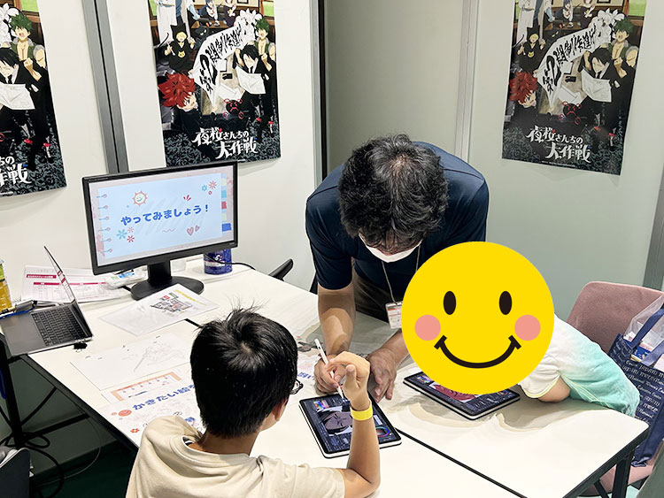 整理券があっという間に無くなり、びっくりしました!参加出来なかった子達がしょんぼり帰っていくのは胸が痛かったです。参加してくださった子達はみんな楽しそうに画を描いてくれて、私自身も元気を貰えました!この先も何かしらの形でアニメーターという仕事に触れて興味を持ってくれたら嬉しいです!