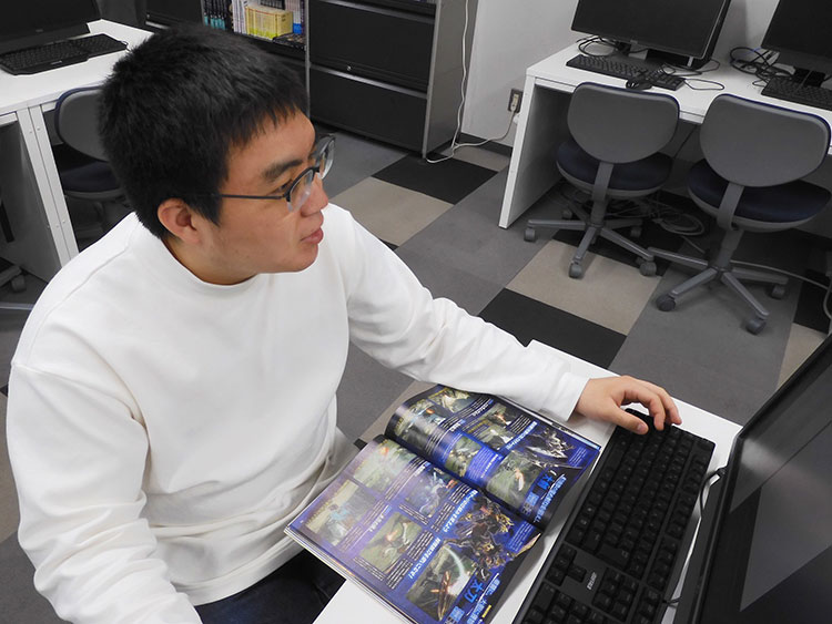 しかし当時は、ゲーム制作の右も左も分からない初心者だったので、ゲームを作るなんて夢のまた夢だと思っていました。そんな時に目にしたのがAMGのホームページに書いてあった「夢を夢で終わらせない」という見出しでした。数ある学校の中で学院の理念やカリキュラムが一番自分に合っているように思えて、迷いなく入学を決めました。