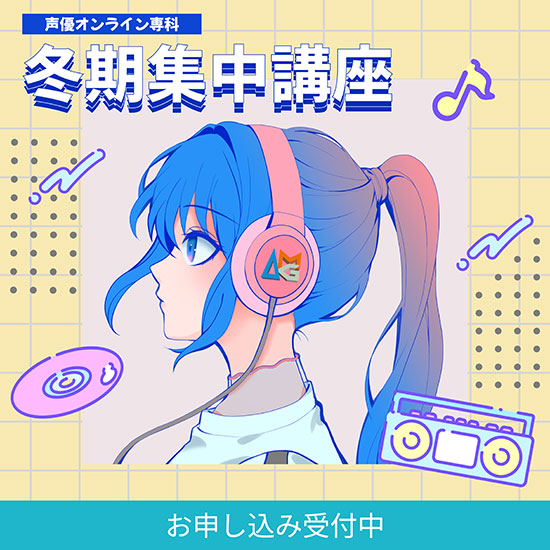 声優オンライン専科とは自宅にいながらアミューズメントメディア総合学院の声優レッスンをオンラインで受講できるコースです。